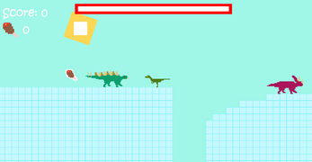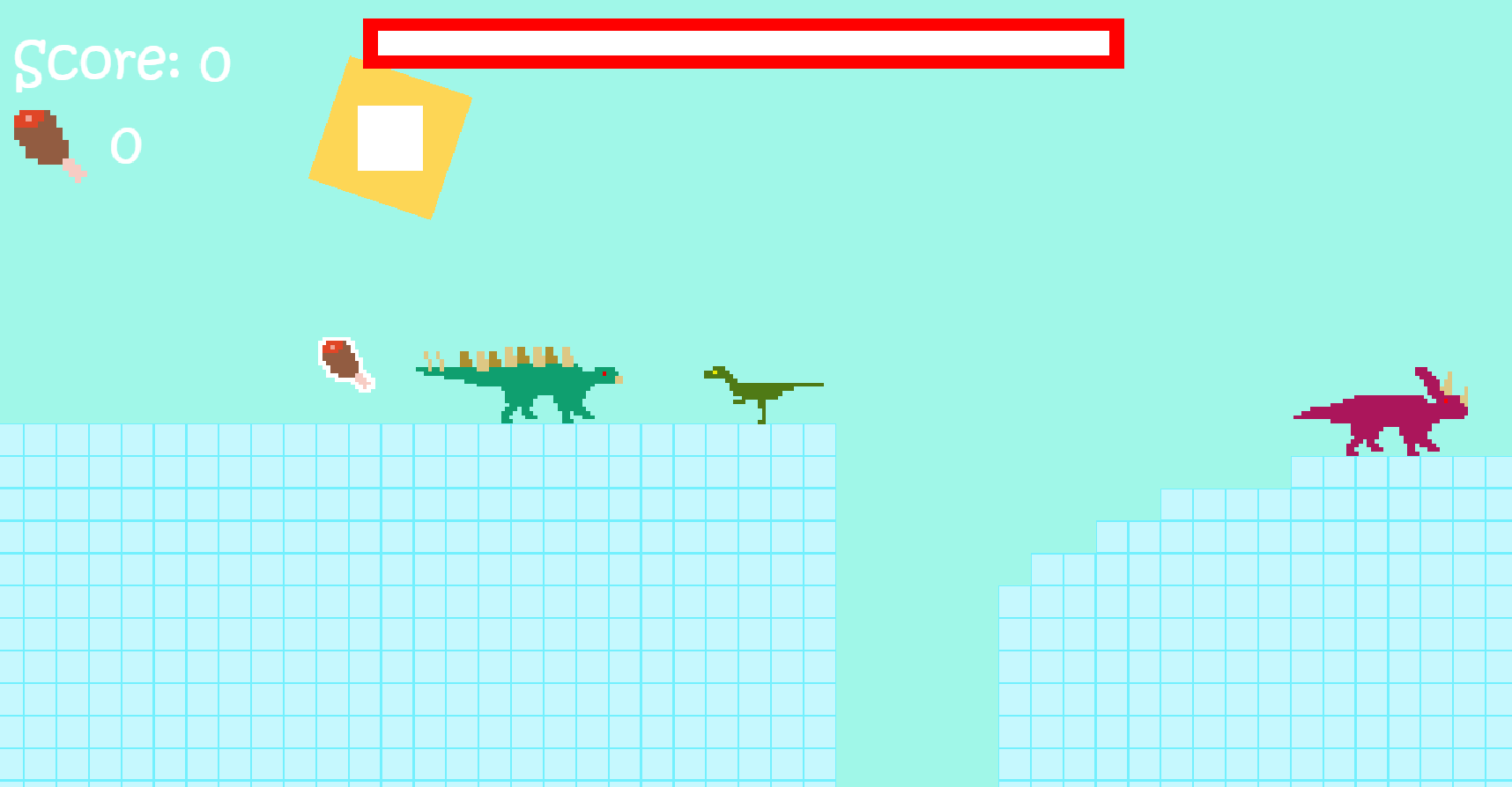 In this game, you play as a little dinosaur which can shoot a laser beam from its eyes. There are 5 levels in total, one is a boss fight.